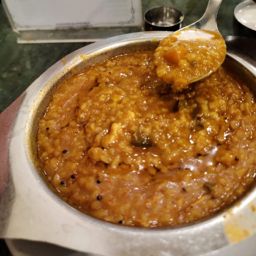 Meanwhile, the gentleman across from me calmly ordered two Bisi Bele Baths. That instantly triggered a craving—Amma makes the best Bisi Bele Bath! Without thinking twice, I told the waiter, “Get me one too… oh, and the Masala Dosa as well!”