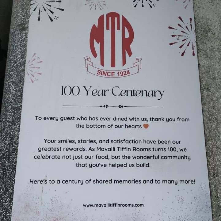 Being a Software Engineer by profession, I consider myself lucky that my career began and continues here in Bengaluru. My office is near Lalbagh, and every day, as I pass through the north gate, I catch a glimpse of MTR’s iconic door, proudly displaying “Since 1924.”